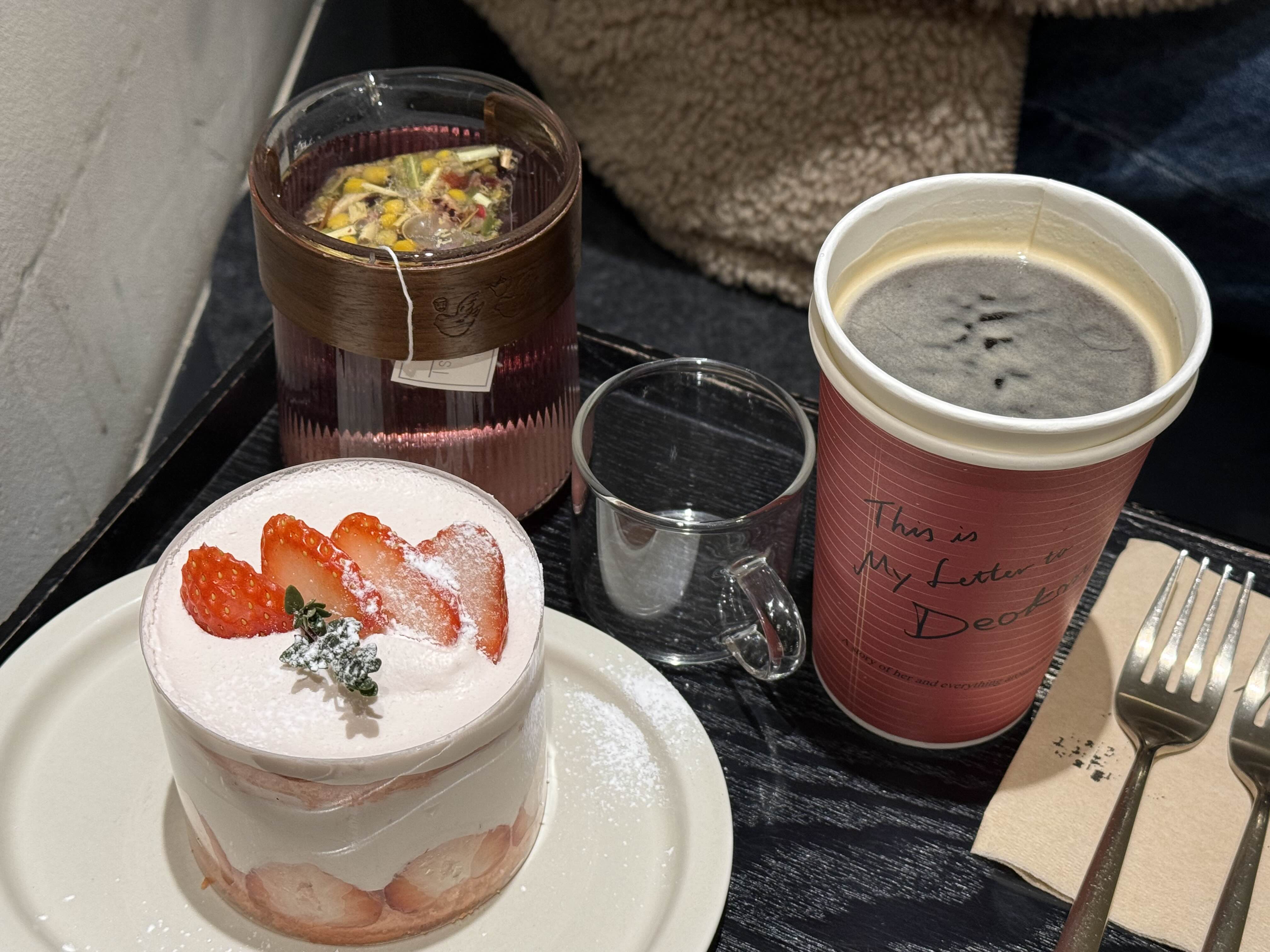 빠질 수 없는 딸기 케이크와 디카페인 아메리카노